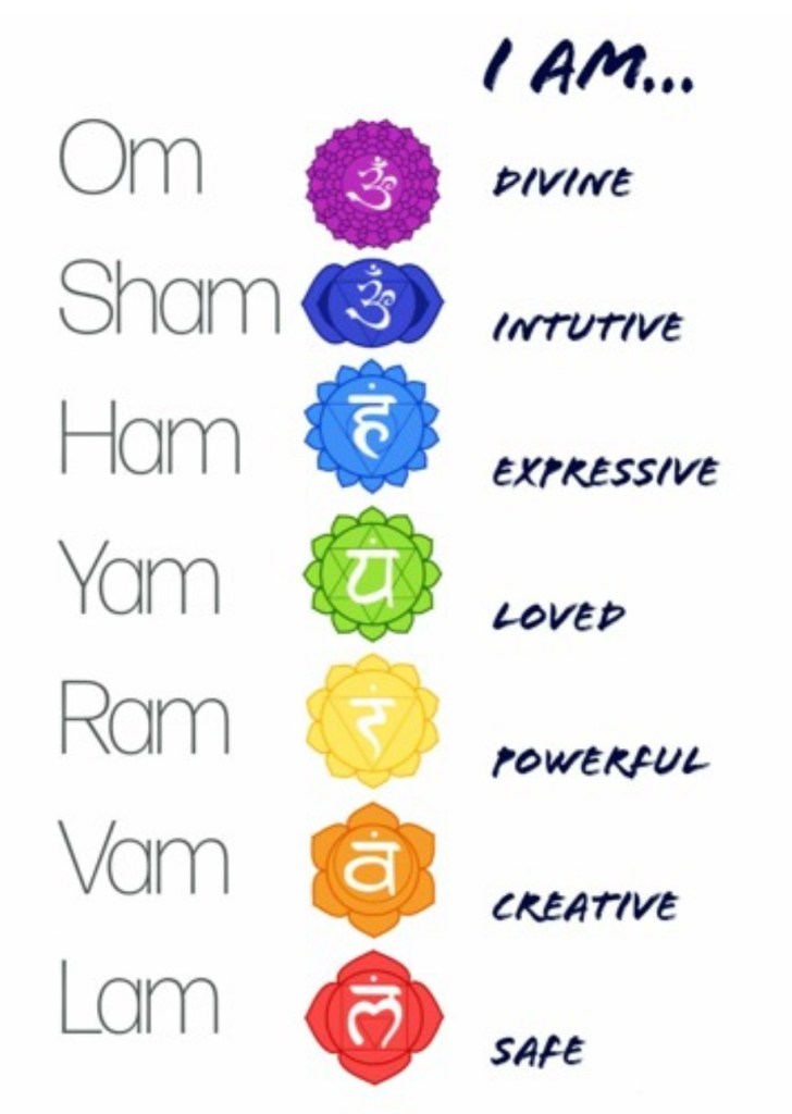 Les 7 chakras principaux & leurs sons : Lam Vam Ram Yam Ham Sham Om